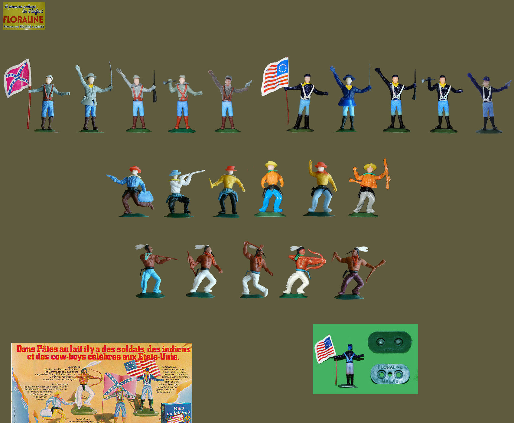 This series dates 1979. We found them in the boxes from " Pâtes aux lait frais" It is of weak imitations of the famous Timpo that everybody knows well. As indicates it this very rare advertising, found recently, there are 24 characters (6 of every).