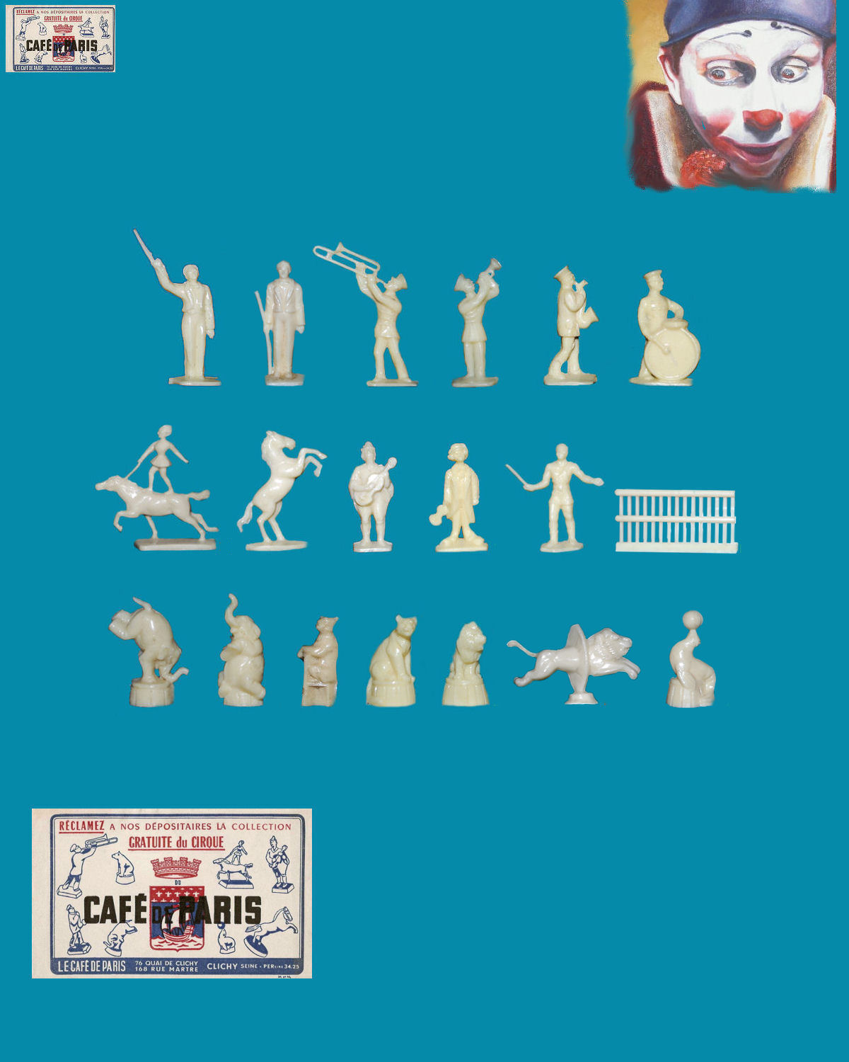 This series dates from the 50s. It consists with 20 figures with 2 fences. After some researchs, it is certain that the bear sat on a pedestal indicated on the blotting paper does not exist. See HERE