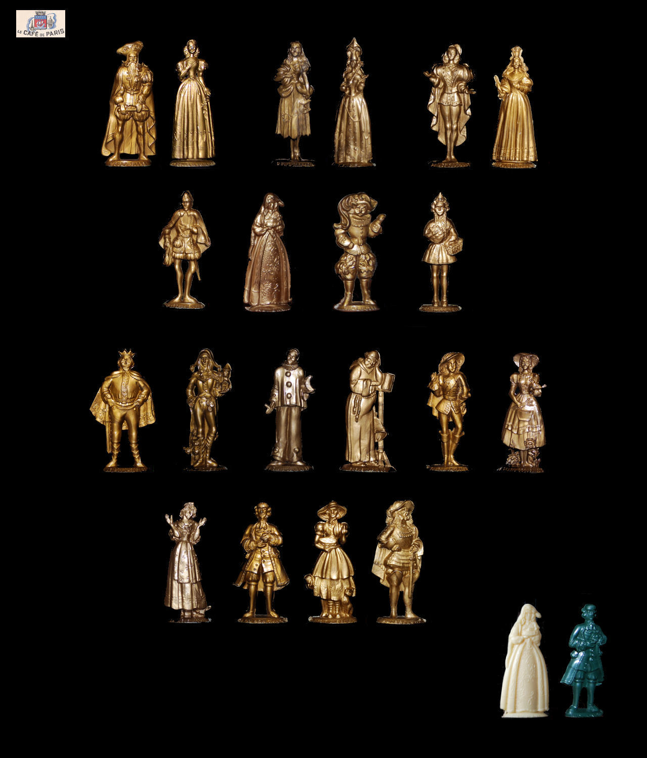 This series at the beginning of the 50s consists of 20 figures. 10 for the tales and 10 for contines. The legend is engraved in front of the base and the brand behind. We can also find them under the brand Vanoye and the Labrador or unmarked and / or in color.