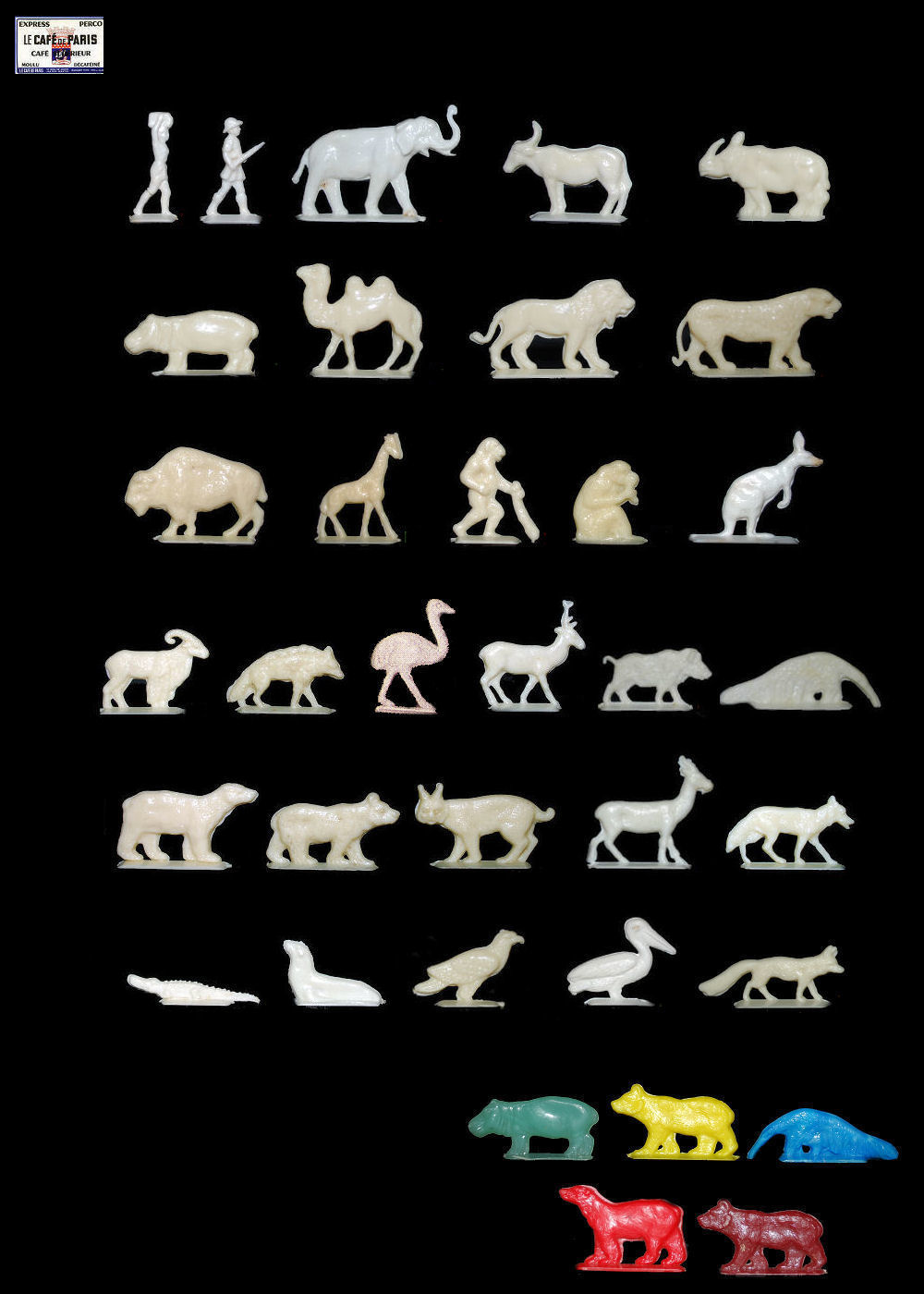 This series is constituted by 30 figurines. It exists under the ECO but especially unmarked brand and in about ten colors. The base is very fine and very breakable. The hunter and the carrier are the least current parts.