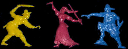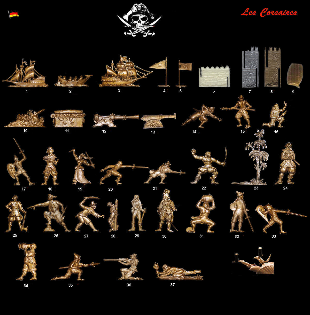 German series consisted in 37 figurines. It is likely that the surrounding wall can be quadrupled, what would total more likely 40 references. Parts are in half-round work, hard plastic. The series exists in 6 colors: gold, silver, white, blue, Pink and Yellow.
