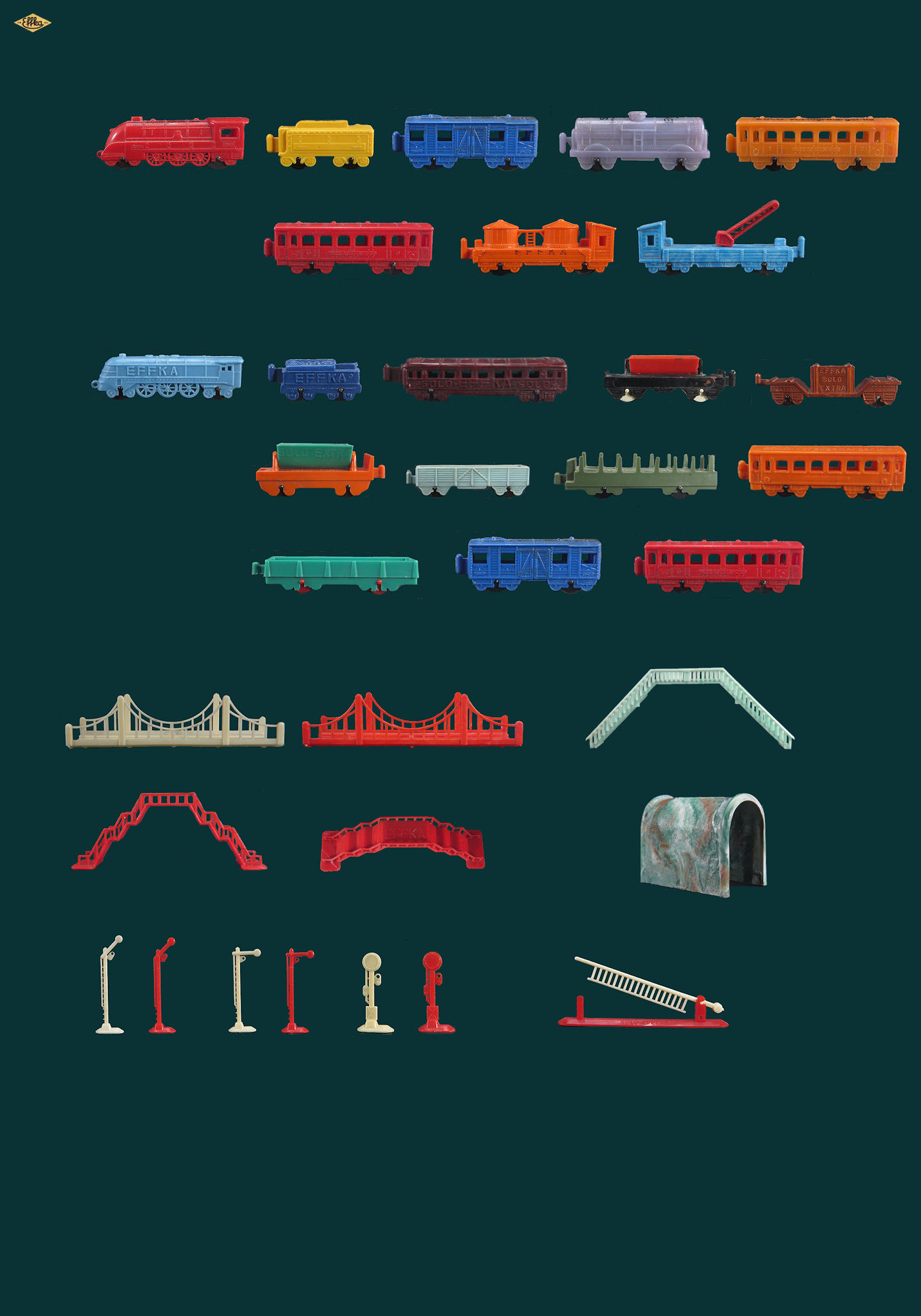 The great classic of the German advertising figurines, the model train. Here three put into series that we can group of course and build a mini railroad network. These series of the 50s are very difficult to complete, especially at the level of wheels.
