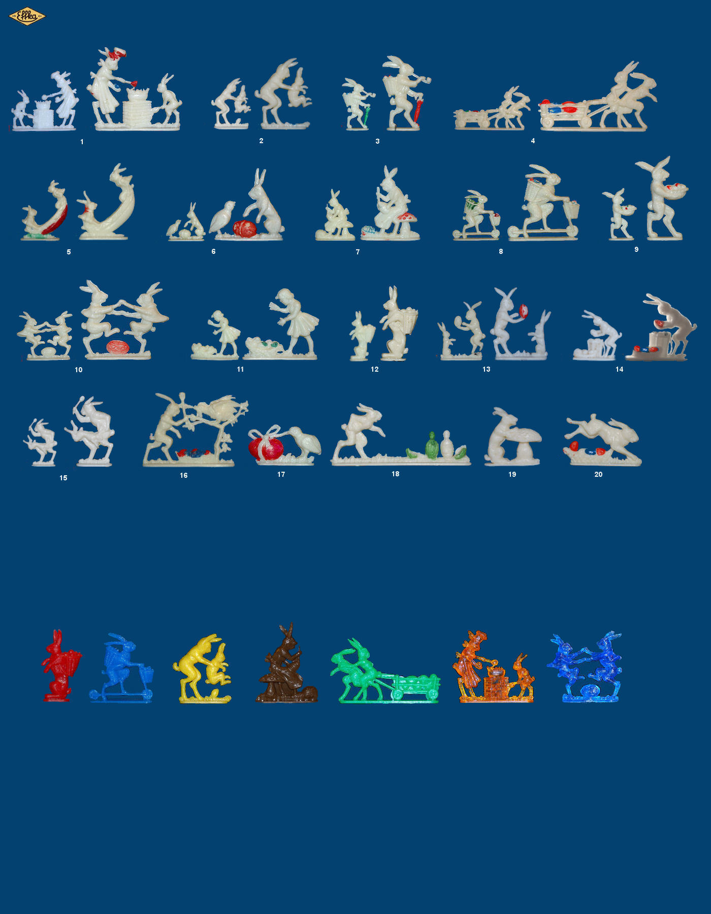 This German series was produced in the 50s. For 20 figures only 5 have no their small size. Indeed, there are two sizes for 15 of enter they. The big sizes make between 40 and 50 mm and youngs between 20 and 30 mm.