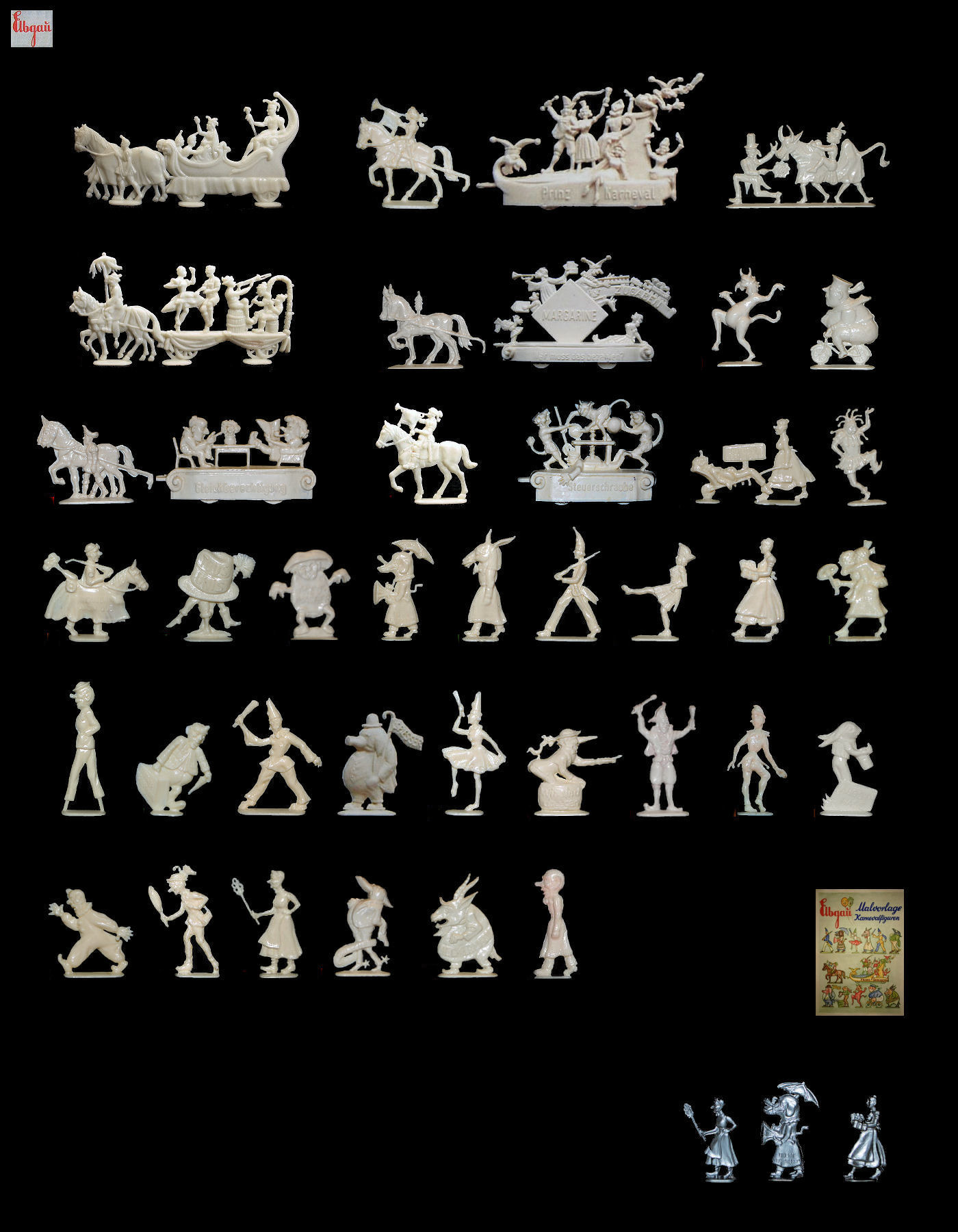 This series includes 40 figures, two tanks having the same reference to advance it. All these characters represent the famous Carnival of Cologne.