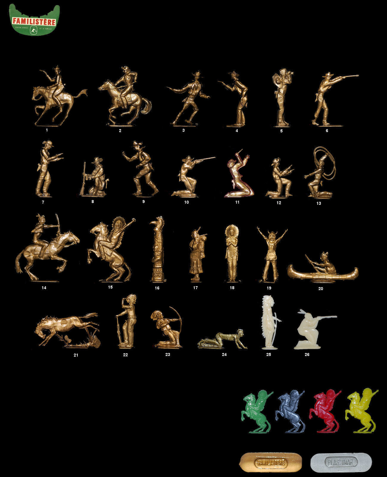 However it would seem that only Indians were produced in the quoted colors. The future will say to it to us. Concerning Plastimar, It is probably a brand of toys which existed in 50s and 60s. Their fragility is extreme as we can notice it and it is not rare to see them in the front window in diverse colors, the totality in the same tint being very difficult to collect.