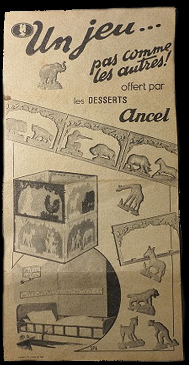 It is at the time of the desserts, in the years 50/60, that Ancel produces two series of figures: the farm and the Safari. To decorate this production, two sorts of frames which can fit between them, are proposed to insert a pair of figurines there.