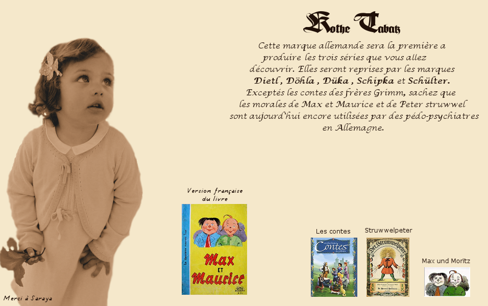 Except for the Grimm Brothers tales, you must know that the morality of Max and Maurice and of Peter Struwwel is today still used by pedi-psychiatrists in Germany.