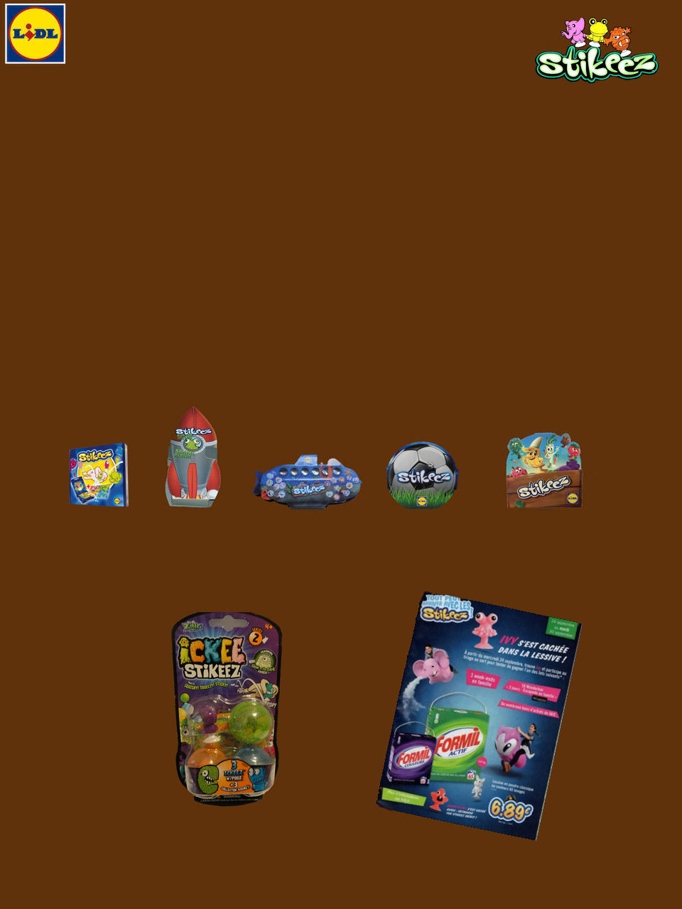 Concernant les Stikeez, ils sont depuis 2013, une véritable révolution chez les enfants. Encore en place en 2018, ils sont offerts aux caisses des magasins à partir d'un certain montant d'achat. Ces personnages en caoutchouc possèdent une petite ventouse en guise de socle permettant de les coller où bon vous semble. Ils sont confectionnés dans d'adorables petits coffrets, munis d'un jeu et d'un petit sac en toile.