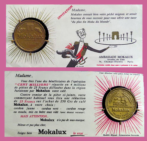 Ci-contre le carton recto-verso où était inséré le célèbre jeton Mokalux![]()