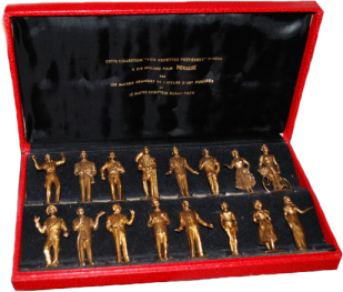 Cette série comprend 32 figurines en ronde-bosse de 54mm, en plastique dur et doré. Il faut ajouter 14 "statuettes d'art", appelées familièrement "régules" (Alliage d'étain et de plomb), d'une hauteur de 150mm environ. Notez que les régules sont tous différents des figurines en 54mm.