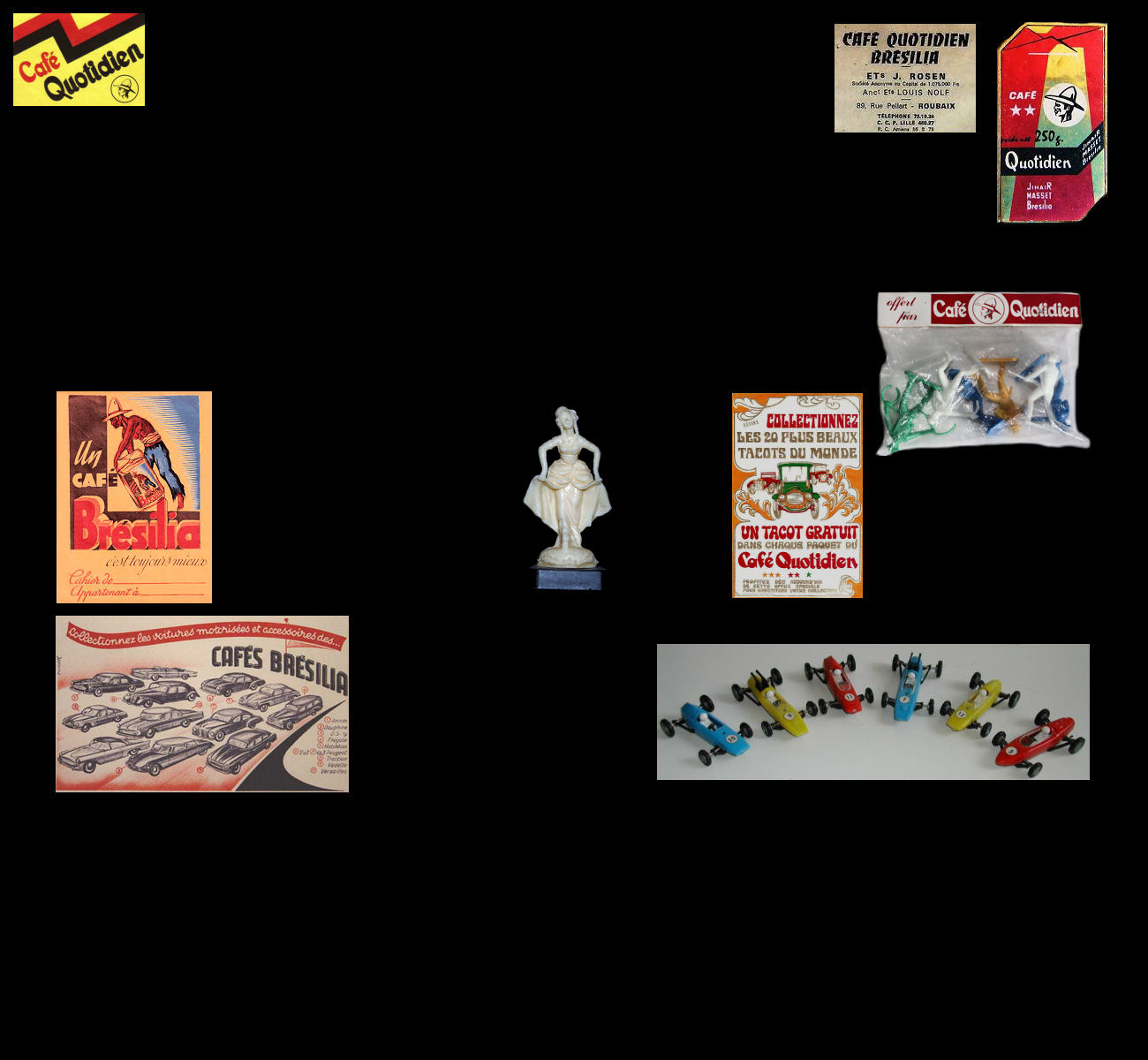 This company of roasting of coffee, situated in Roubaix, dating 60s. Under " Le Café Quotidien" are added three other brands: Cafés Jihair, Cafés Masset and Café Brésilia (not to confuse with the café Brasilia). We can moreover find sometimes, the initials JMB on some figures.