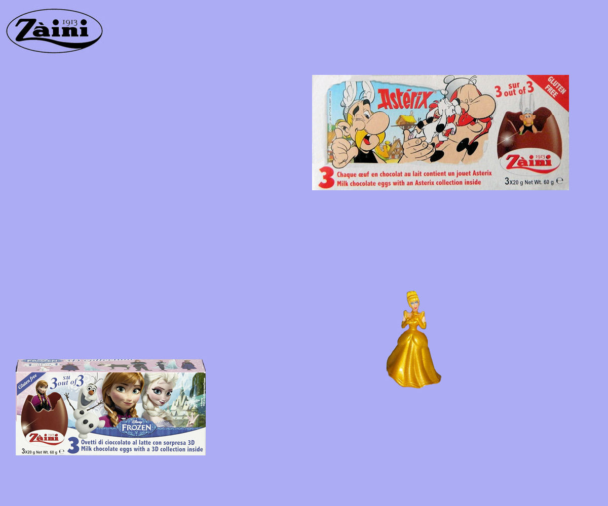 Luigi Zaini ouvre sa première usine de chocolat, bonbons, confitures, etc... en 1913. Les ressources créatives reliées à l'emballage sont toujours très recherchées et au goût du jour, surtout ceux concernant les figurines. Le papier couvrant les oeufs est toujours superbe.