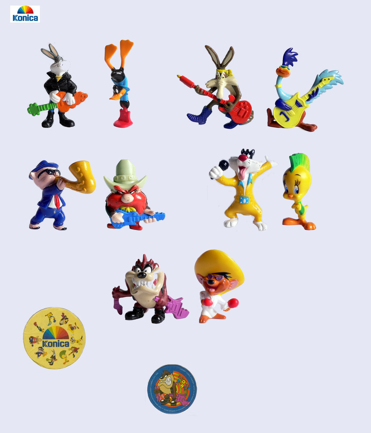 Konica is a Japanese company based in Osaka. This series of 10 characters of Warner was produced in 1995. They measure on average between 50 and 70mm. They represent diverse musicians and known singers, as well as certain musical movements, such as the Punks. They were offered in the packs of film.