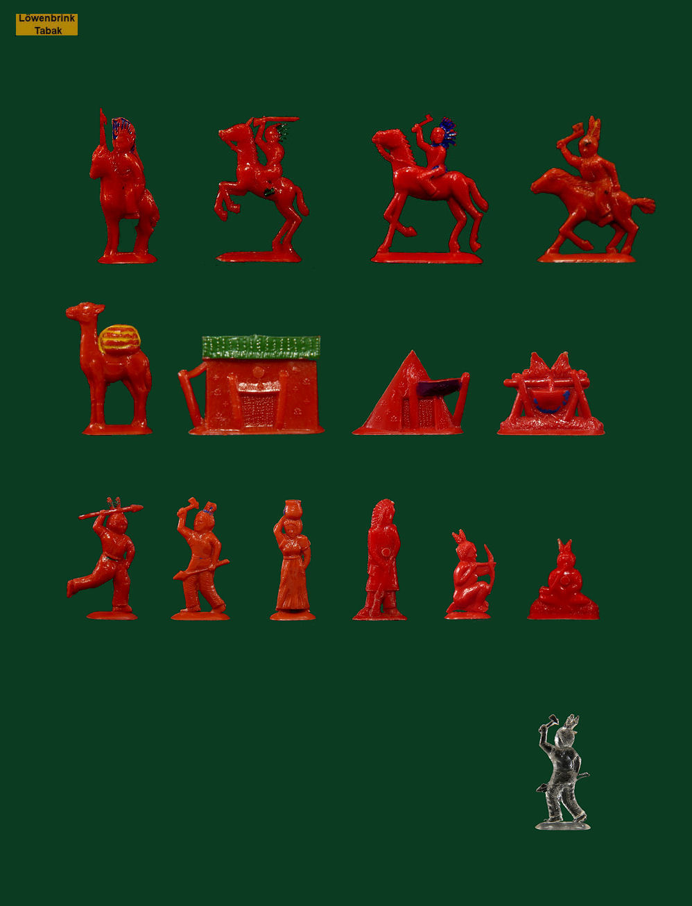 This German series of 14 figurines is probably very old if we trust the very primary engraving of figurines. The presence of the curious small house stays a mystery.