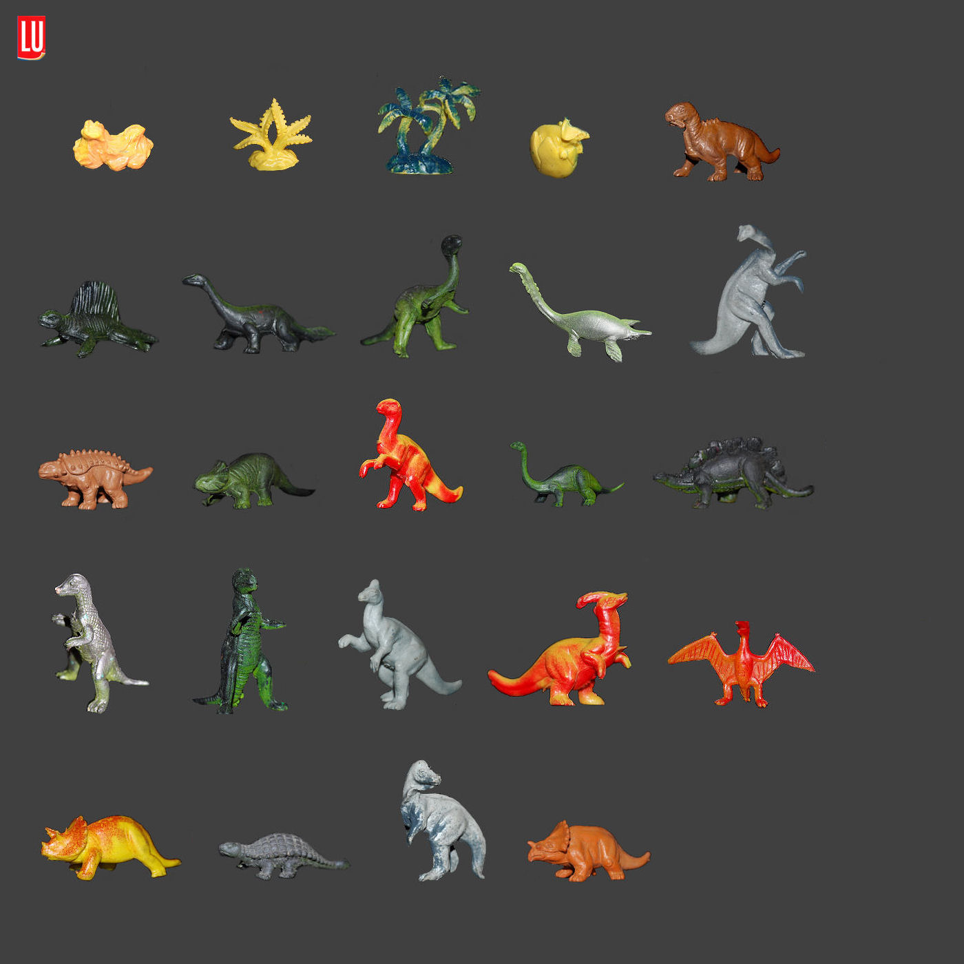 This series of 1994 have 24 hard or flexible plastic figures, what makes it a rarity because they are in quite way engraved LU. No track for the moment of a descriptive list of these dinosaurs, but after dialogues, names affixed on this page seem the best adapted.