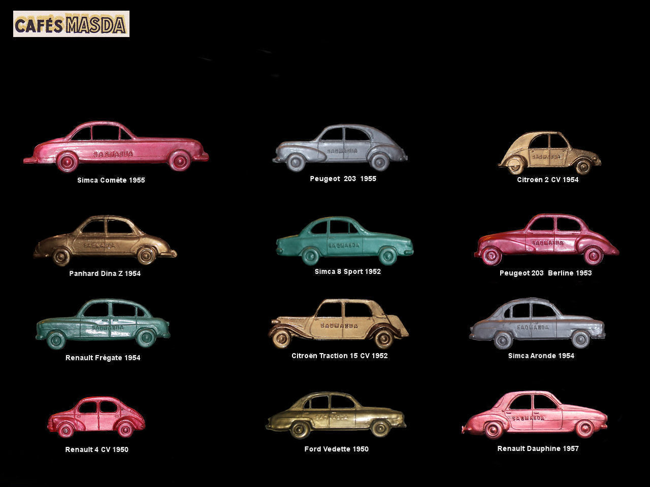 After years of research... actually 1 month... 2 days, cars series in half-round works is finally complete. It includes 12 plastic references, 60mm. All cars are French including the Ford which is not an American Ford but a Ford SAF (French Limited company).