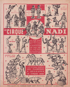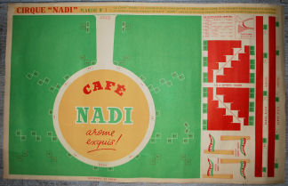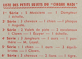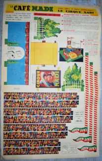Nadi offered this bound paper circus. 2 boards measure 58cm x 36,5cm. A small insert, in close-up below, indicates exactly figures.