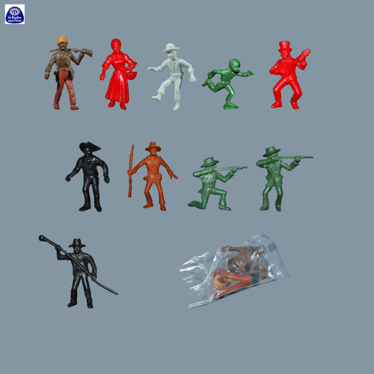 1 ° His family - 2 ° The Indian wars - 3 ° Alamo - 4 ° Trapper period . The incription " Roche aux Fées" is engraved on them of the figures. We'ill notice that the key characters have several parts to betaken up and that every figure one a specific color.