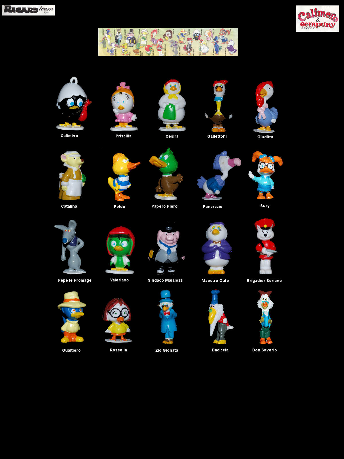 Calimero! This poor small black chick who made the whole world cry... This series of 20 figures dates 1996. His manufacturing is Italian, plastic flexible and of a scale of 20 in 25mm.