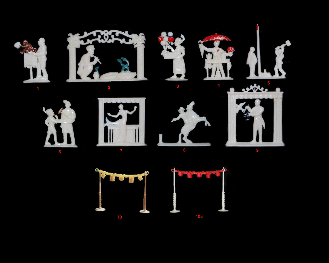 German series of 10 figures. 2 Chinese lanterns counting for one reference. These last ones are very difficult to find.
