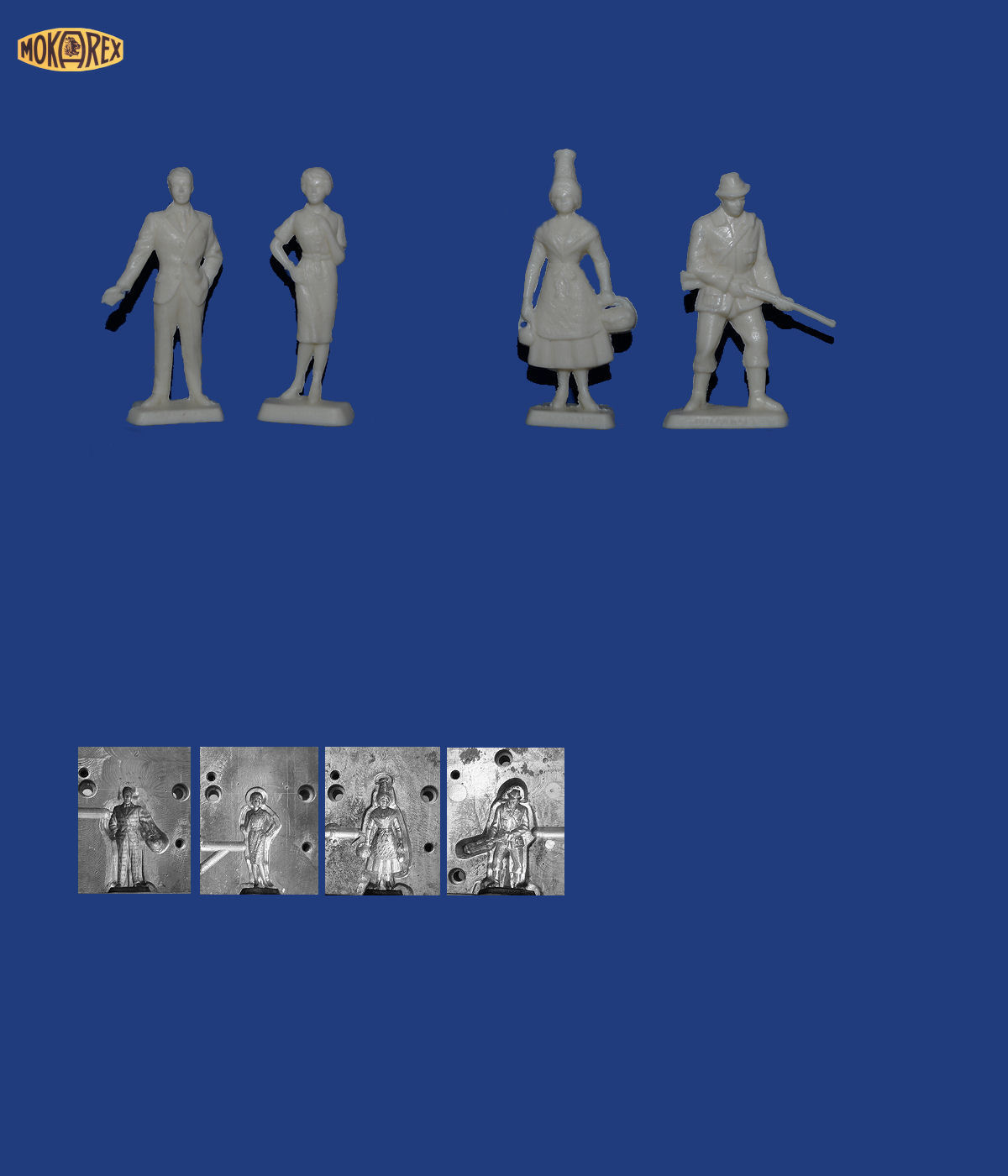 C'est donc après environ 50 ans, qu'il a décidé de mettre en oeuvre ces fabuleuses figurines et prolonger ainsi l'histoire Mokarex. La matière est de la résine polyuréthane, identique à du plastique dur un peu plus fragile. On peut les comparer à la série du 1er Empire chez Crio.